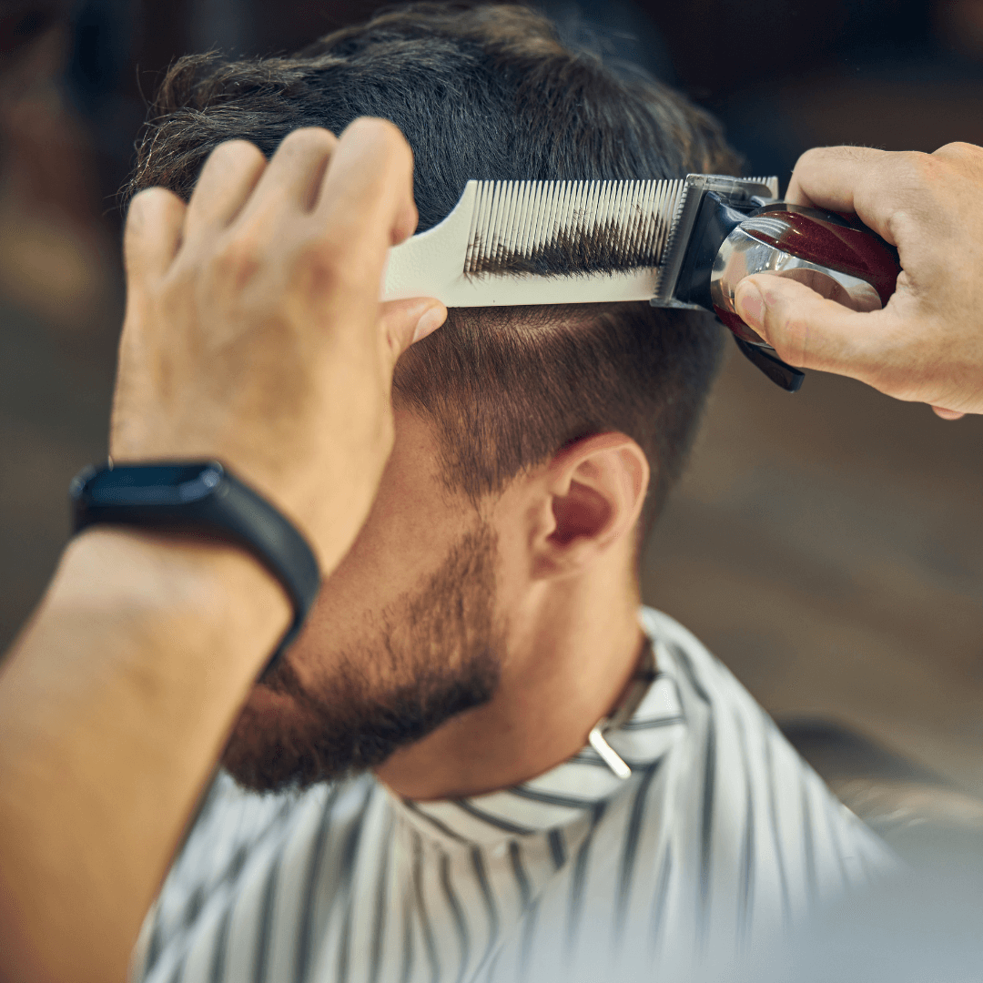 We provide a wide range of men’s grooming services, including haircuts, beard trimming, shaving, hair coloring, facial treatments, and spa services.